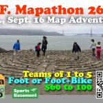 Enjoy amazing highlights and lesser-known secrets of San Francisco in an epic way – a Mapathon (or Half)! A marathon distance of 26.2 miles or “half” of 13.1 miles with foot only and foot+bike divisions. Teams of 1 to 5 will use a custom map to navigate to 12 or 25 checkpoints and 1 aid station along the way, answering simple multiple choice questions at each. Enjoy refreshments & socializing at the finish.